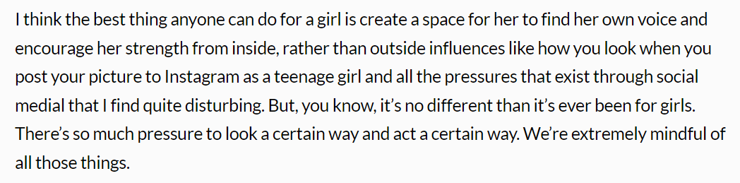 I tried to find an interview, and one might be out there, but I couldn't readily find a good synopsis of her fears. I'll try to summarize from memory:
