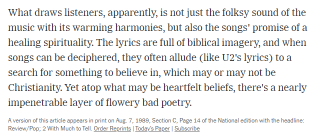 The wide sentiment that they have saved lives with their music. Both are humble and credit more the inclusiveness and experience and the musical moment more than any individual asset of theirs.